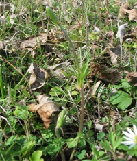 Low, upright, unbranched hairy perenial (4 - 16 in) when flowering or fruiting. Stem solitary from small tuber without rhizomes or stolons.
