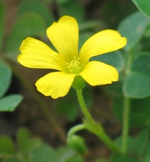 Flower: to 1 in, 5 yellow petals, sometimes marked with red in basal area, usually opening flat. 2-9 flowers clustered on stalks longer than the leaves. Noding before and after blooming, remaining open only duringy warm or sunny weather.